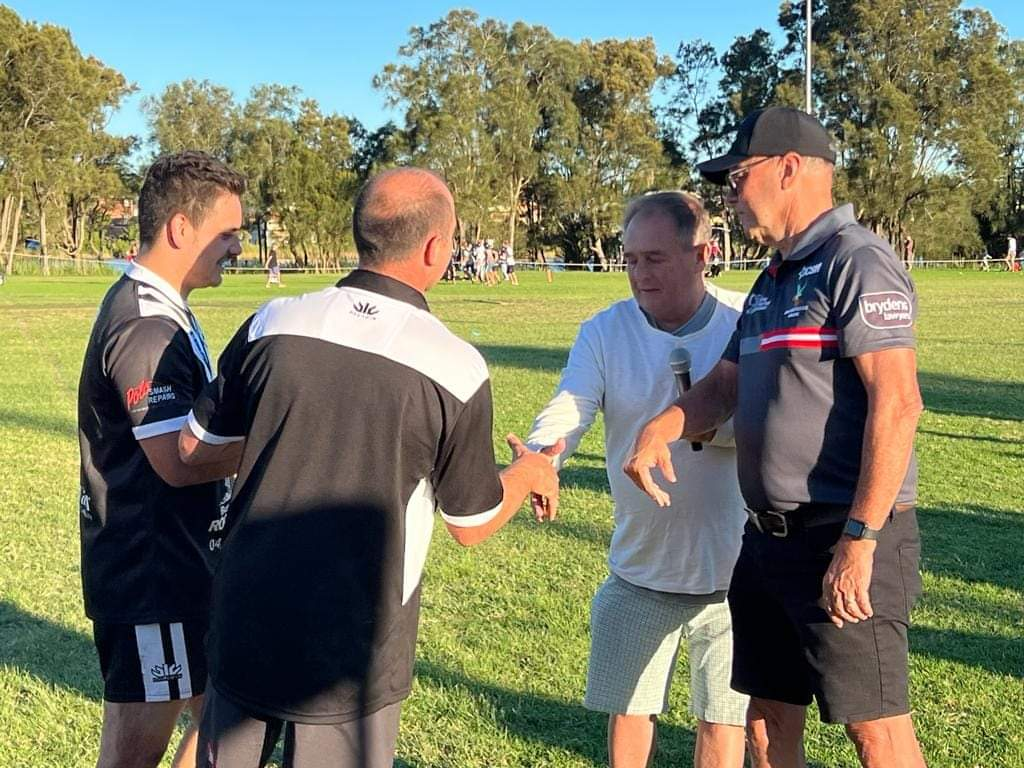 Congratulations to Narrabeen Sharks A-Grade for winning the Col Hallinan Cup against Ryde Eastwood Hawks A-Grade at Lake Park, Narrabeen on Sunday. Col has supported Ryde Eastwood Hawks for many years and is a current club sponsor (Cols Body Shop). Col also is a Narrabeen ‘Sharkie’ life member, past President and club sponsor. The cup was established in his honour with 2023 being the first clash in this annual event.