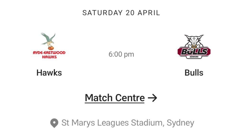 Hawks Sydney Shield will face Hills this Saturday for Round 4, 6pm at St Marys Leagues Stadium, Sydney.